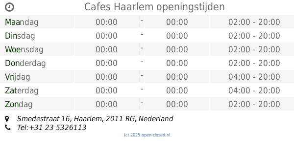 Het is ook mogelijk: Bewerk deze OPENINGSTIJDEN van Restaurant Cafes In Haarlem, Smedestraat 16,